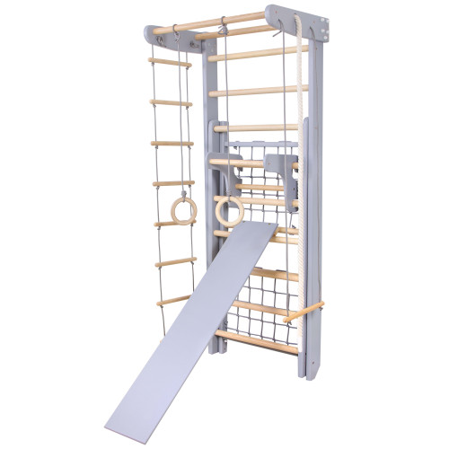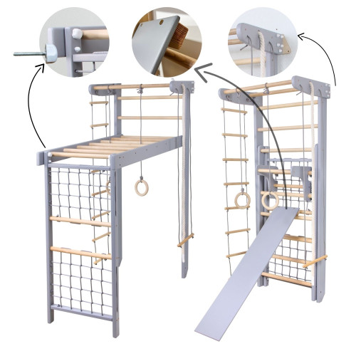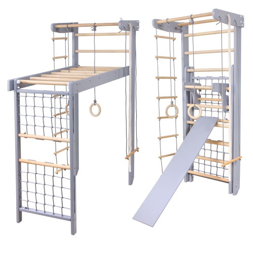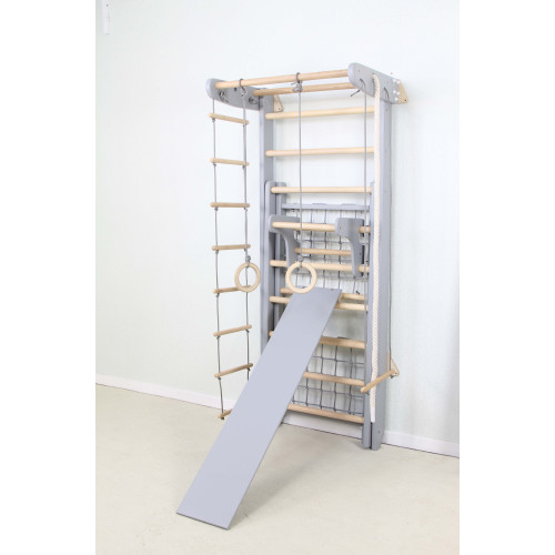 Спортивний Куточок ТРАНСФОРМЕР GREY Повний Комплект (із дитячим турником та дошкою) двоскладова сітка